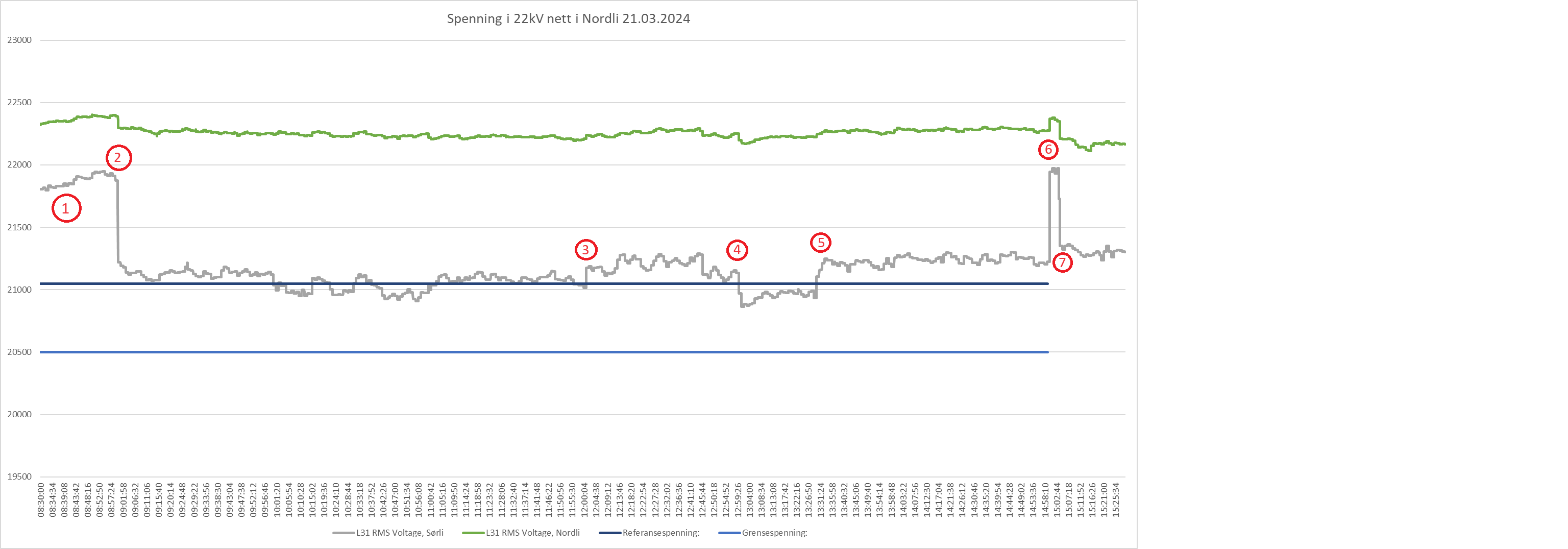 Grafen over viser spenningsnivået i Tensio sitt nett i Lierne